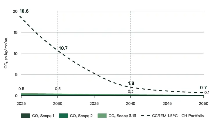 Dans le portefeuille de projets de SIF Living ESG, nous avons presque atteint cet objectif: d’après les évaluations de Wüest Partner, nos six immeubles achevés selon les directives ESG les plus strictes n’émettent que 0,26 kg/m²a de CO₂. Le benchmark CREEM (Carbon Risk Real Estate Monitor) couvre les biens immobiliers suisses dans les secteurs commercial et résidentiel.